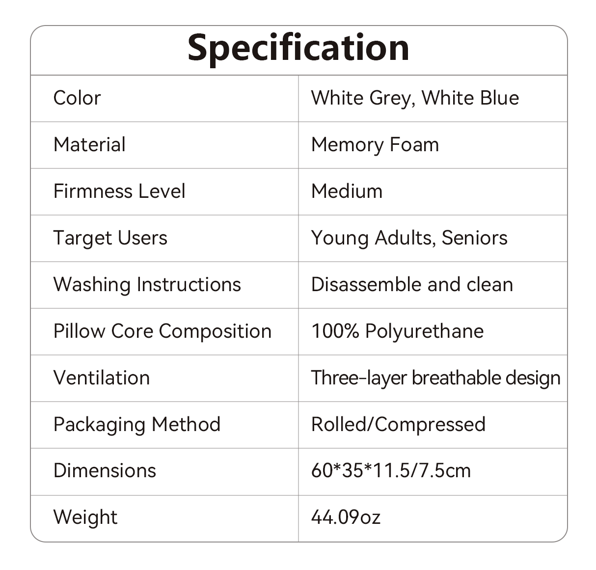 - Slow-Rebound Memory Foam: Adapts to your head and neck for steady, long-lasting support.